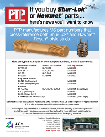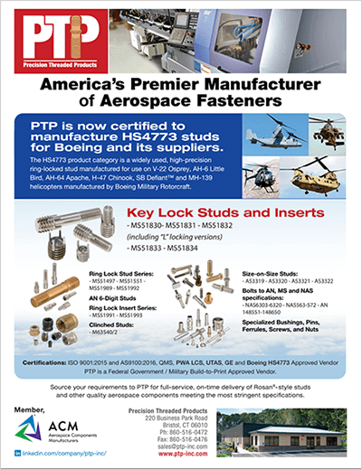 PTP is now certified to manufacture HS4773 studs for Boeing Accredited suppliers are approved to do business with Boeing Company and its approved suppliers.